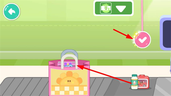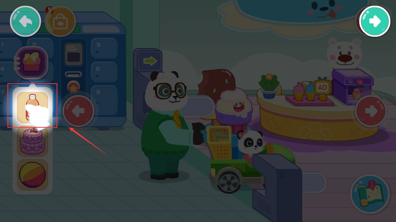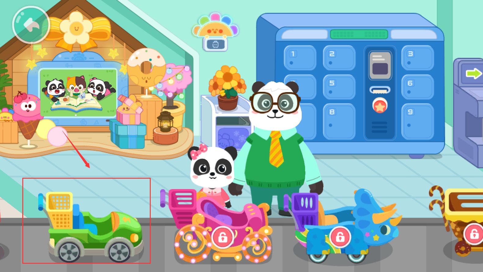 2、將購物車推至家長角色跟前,輕觸兒童圖標觸發互動動畫寶寶會開心地爬進專屬座椅,并系上安全扣帶。