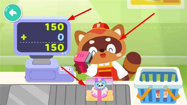 2、算術實踐應用:在結算環節完成找零計算,紙幣硬幣均可使用。設有"小收銀員"模式,體驗完整收銀流程。