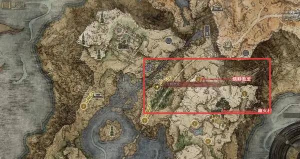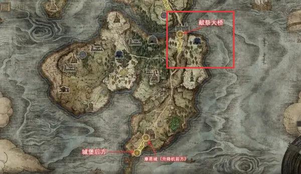 1、打開游戲地圖界面,識別獻祭大橋、教堂后方等目標點位,規劃包含這些地點的移動路線。