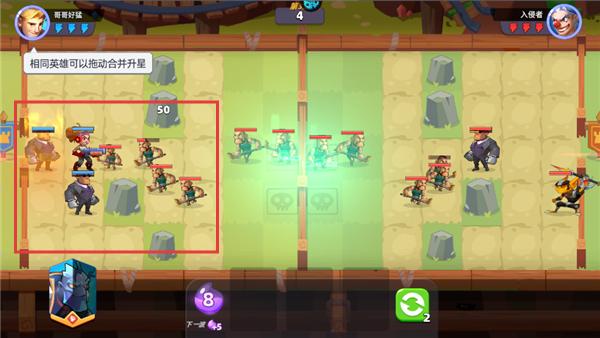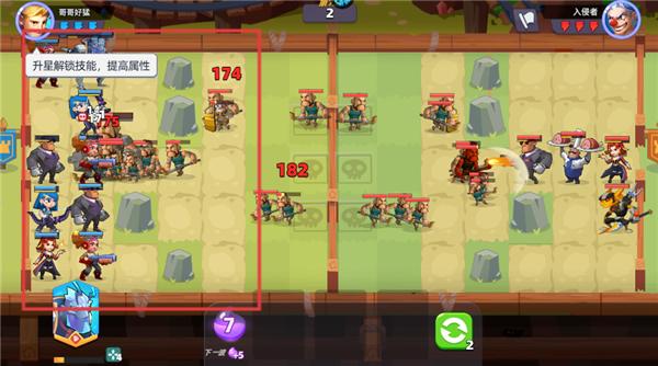 3、合成策略操作:把握合成時機將同等級角色升級,獲取更高屬性戰力的角色,優化陣容配置提升整體防御作戰能力。