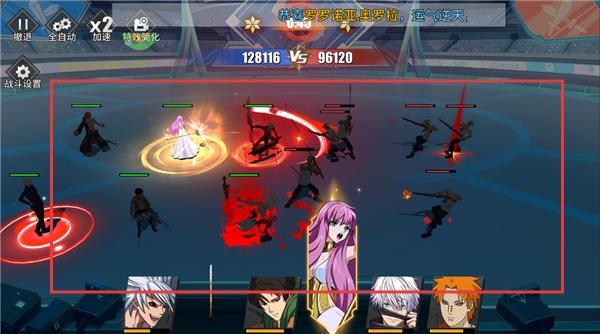 1、挑選動漫角色組建陣容,踏入競技場交鋒,借角色技能與屬性克制,限時內擊潰敵方單位。