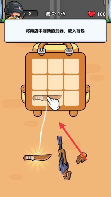 1、在新背包幸存者的末日世界里,商店是獲取武器的重要途徑,隨著進程推進商店會定時刷新出各類武器,將商店中刷新的武器放入背包,刷新商店獲得更多武器。