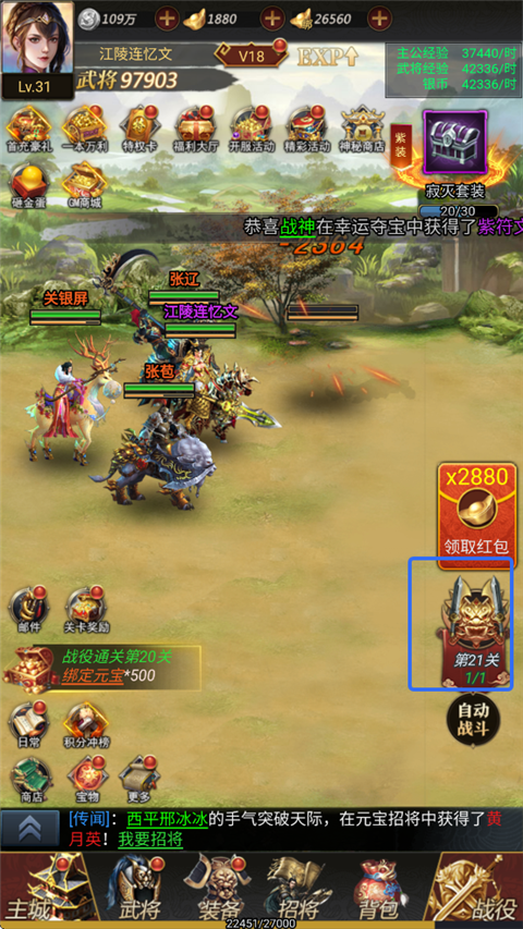1、福利核爆模式:開局登錄即領頂級自選金將,直接開啟福利核爆模式,讓玩家輕松擁有強力武將。