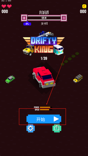 1、啟動游戲后進入主界面,點擊開始按鈕即可選擇不同賽道開啟競速之旅。