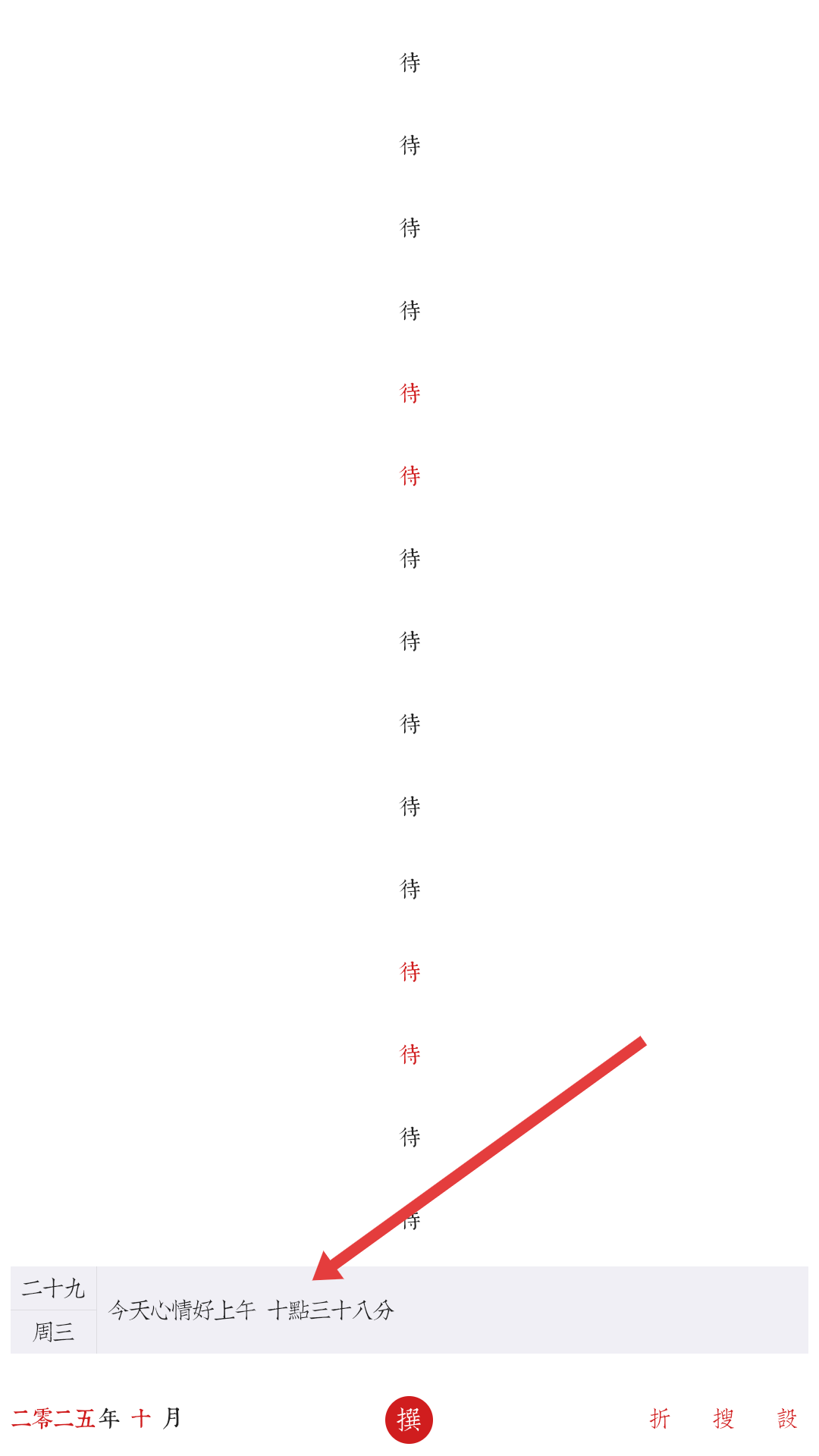 1、主界面點擊底部紅色撰按鈕,可進入日記編輯界面,開始記錄當天內容。