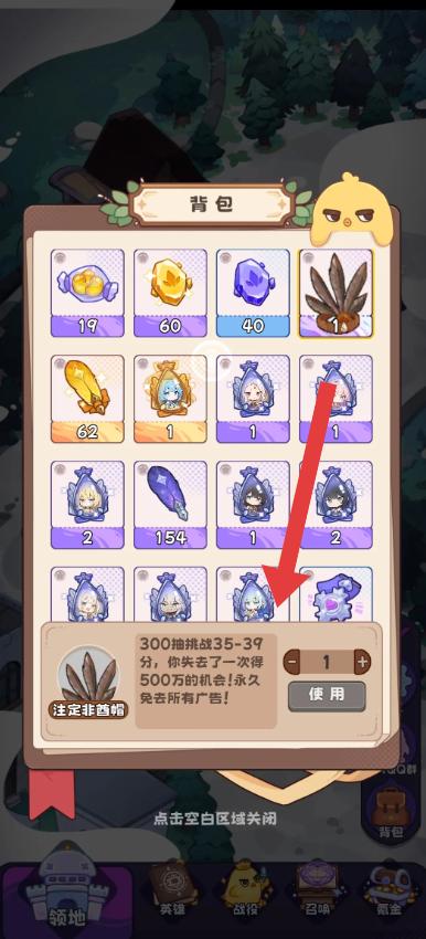 1、打開背包界面找到300抽挑戰相關道具,點擊使用依據提示,可用于參與對應挑戰活動,推進抽獎進程。
