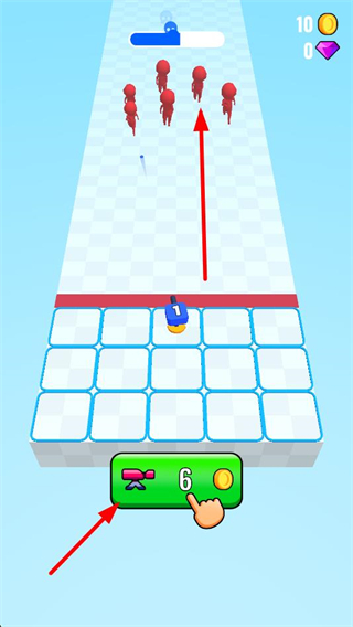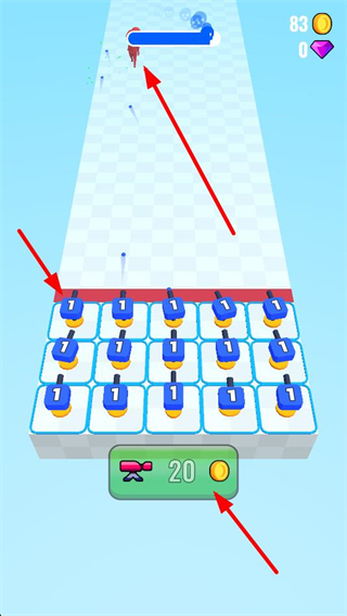 1、看到路徑上的紅色角色,點擊下方帶炮塔圖標的按鈕,消耗對應金幣即可部署炮塔,炮塔會自動攻擊路徑上的目標推進關卡。