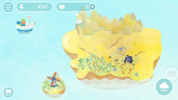 3、游戲玩法很簡單,玩家用能量給荒島降雨,使得島上生長植物產生草原,從而培育各種各樣的動物。
