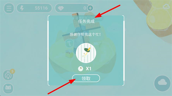 4、任務完成后會彈出提示界面,顯示獲得的物品獎勵,點擊領取按鈕,獲取獎勵道具,助力風車的進一步升級與運營。