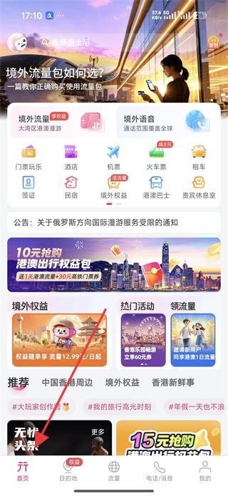 4、登錄后可使用軟件內的各種工具,如導航助手、翻譯、客援助手等,也可參與熱門活動,如10元搶購港澳出行權益包,提升出行體驗。
