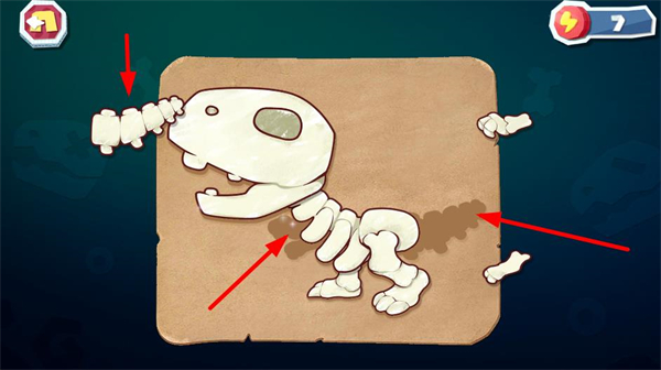 4、后續進入化石拼接環節,把散落的骨骼部件移動到對應位置,填補化石缺失的部分,讓恐龍骨骼恢復完整的結構。
