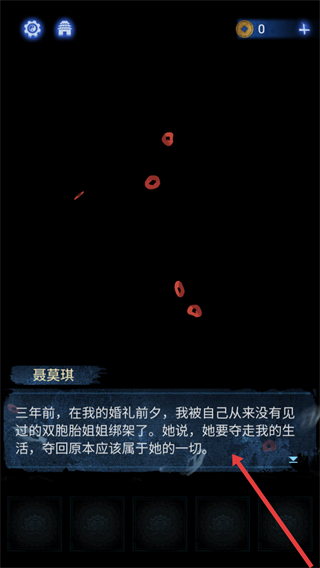 2、有聶莫琪的劇情文字,講述三年前婚禮前夕被雙胞胎姐姐綁架的故事,通過劇情了解游戲背景,推進故事發展。
