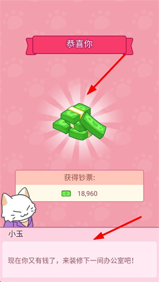 2、獲得鈔票后,小玉會提示裝修下一間辦公室,利用資金完善辦公環境,提升公司整體形象和運營效率。