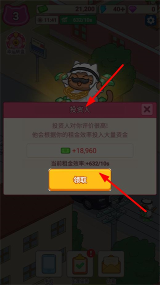 1、投資人會根據租金效率投入大量資金,點擊領取可獲得資金,如加18960,提升公司資金儲備,助力經營發展。