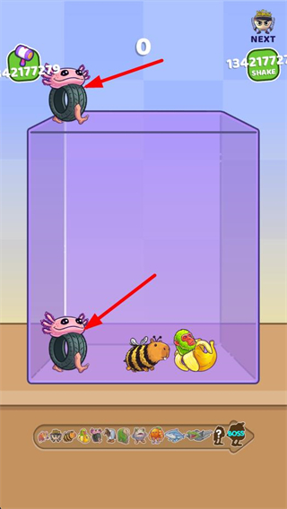 3、將兩個相同角色合并為更高等級生物,逐步解鎖蜜蜂水豚、甜甜圈水豚等趣味組合。