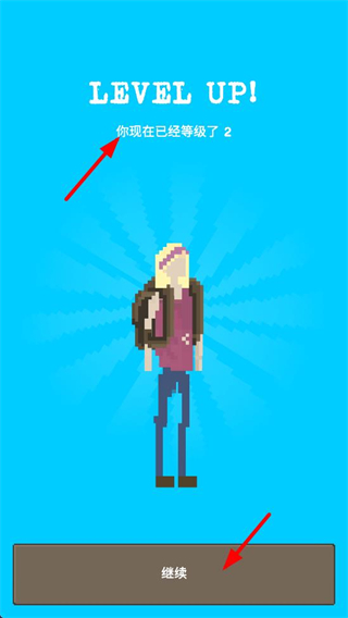 4、角色升級到2級,點擊繼續推進游戲,解鎖新的能力或內容,提升角色在末日環境的生存優勢,體驗成長帶來的收益。