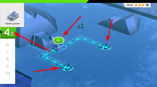 4、根據設施分布,調整電力傳輸線路的連接方式,優化線路以穩定輸送電力,完成關卡目標。