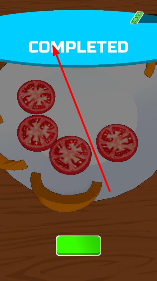 3、當到達賽道終點,完成規定的食材切割任務后,若屏幕顯示COMPLETED,則表示關卡挑戰成功,可進入下一關繼續挑戰。