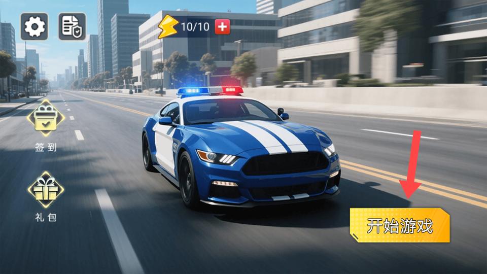 1、點擊開始游戲,進入關卡選擇,可先完成簽到,領禮包,積累資源再開啟警匪追逐。