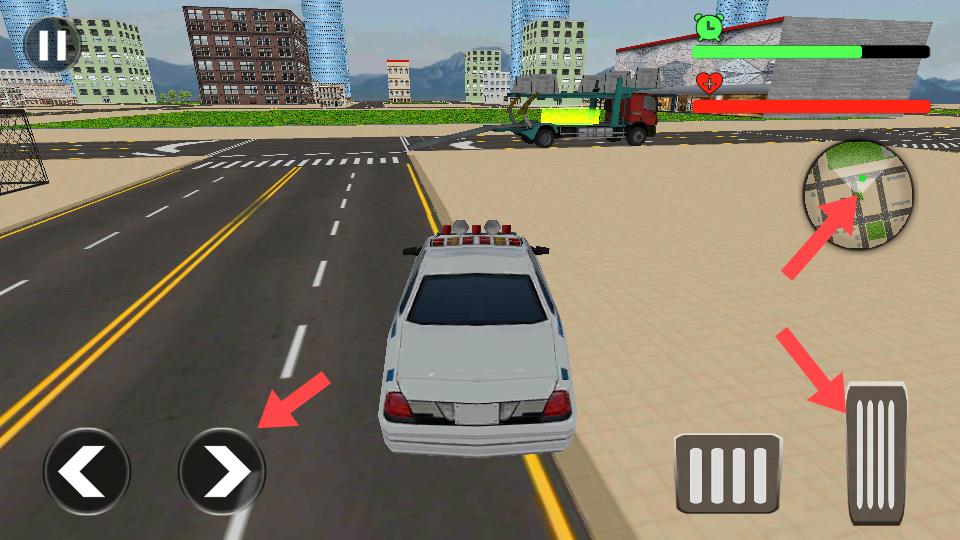 3、駕駛警車時,左側方向鍵控轉向,右側控制加速剎車,跟隨小地圖標記追捕目標。