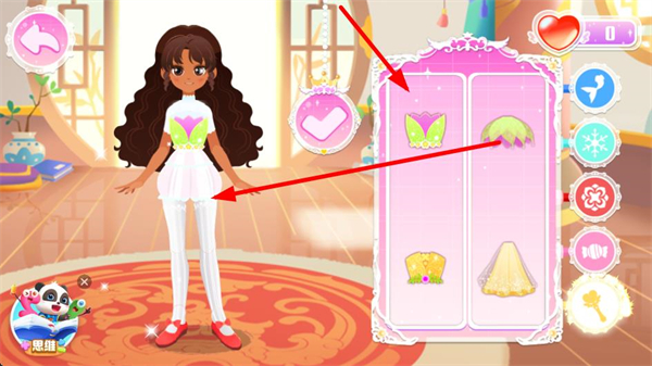 4、舞臺展示環節:帶領公主前往森林、城堡等場景走秀,根據主題調整穿搭風格,爭奪“時尚之星”稱號與獎勵。