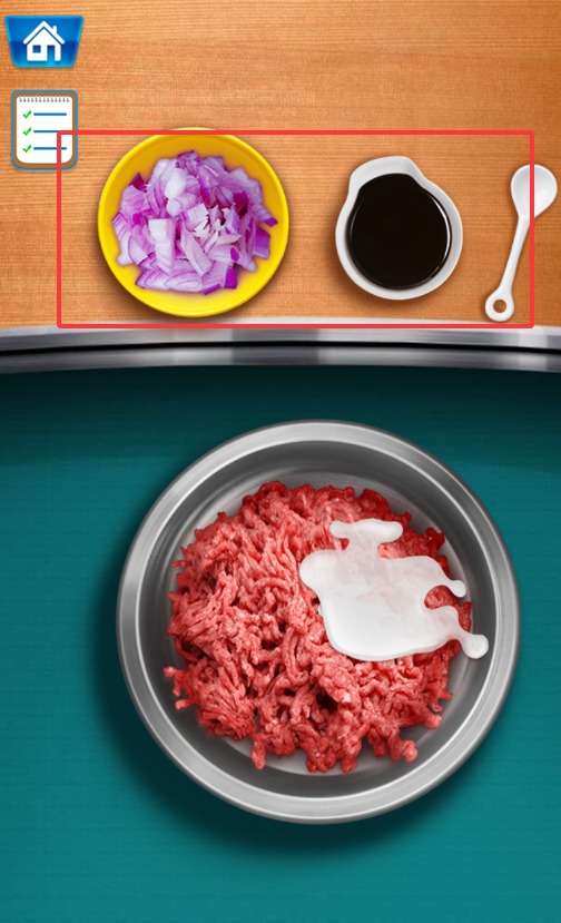 1、游戲開始會看到各種調料罐,鹽啊糖啊辣椒面啥的,都擺在臺面上隨便用。