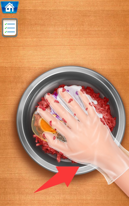 3、加完料直接上手攪拌,左劃右劃把調料和餡兒和勻,跟真的做飯一樣。