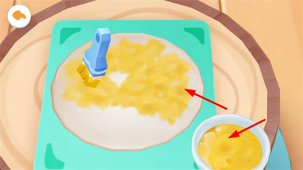 3、點擊蔬菜后用手指滑動屏幕,完成清洗、削皮等預處理步驟,為蛋糕制作準備好新鮮食材。