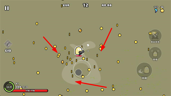 2、觀察怪物位置,靈活走位,借助自動攻擊持續輸出,注意拾取掉落道具,提升戰斗續航,應對多波敵人進攻。