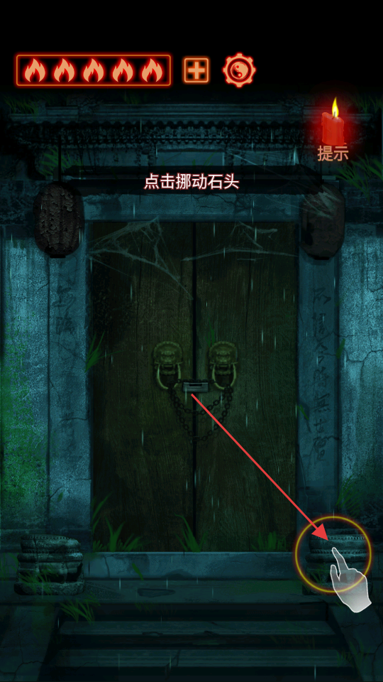 3、當需要挪動石頭時,根據提示點擊石頭位置,通過挪動石頭來解決游戲里的相關謎題。