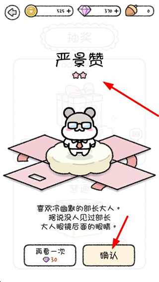 4、抽獎獲得新角色后,點擊確認按鈕完成獲取,解鎖該角色的互動功能,后續可在小屋里與新角色進行互動。