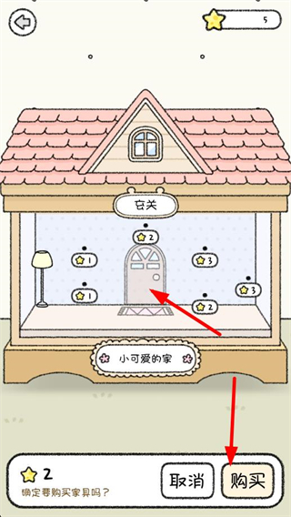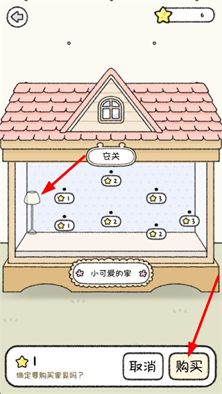 2、繼續在界面選購不同家具,消耗對應數量的星星完成購買,逐步豐富小屋的裝飾內容,提升小屋美觀度。