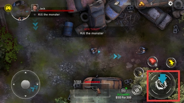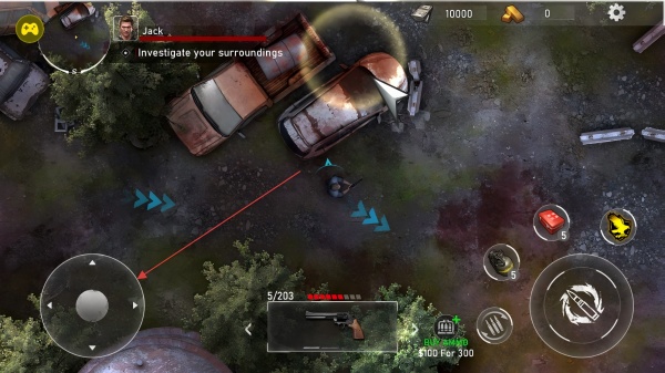 2、通過虛擬搖桿控制角色移動,在游戲場景探索,尋找敵人和任務目標。