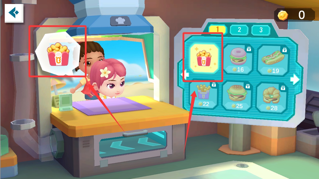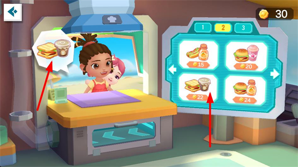 1、查看顧客點單需求,選擇對應的美食組合,確認后開始制作該美食,完成后可獲得對應的金幣獎勵,推進店鋪經營。