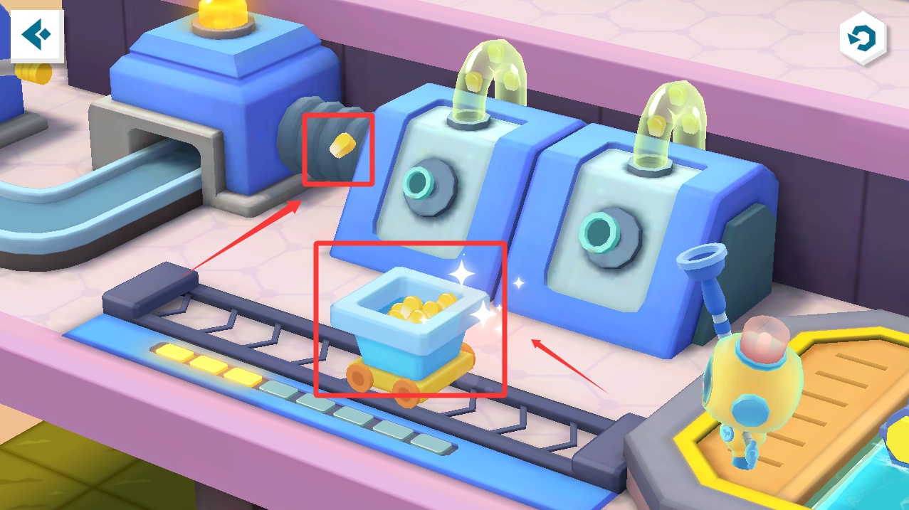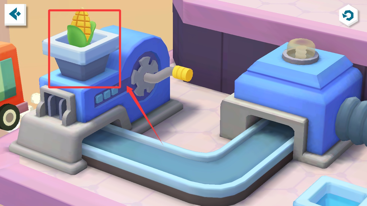 3、獲得原料后,將玉米粒拖拽至畫面中央的爆米花機入口處,機器會開始運轉并發出"嗡嗡"的工作音效。
