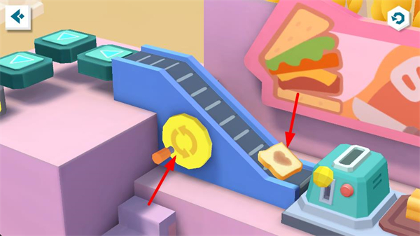 2、在制作過程,操控設備處理食材,將食材放置到傳送裝置上,通過設備加工食材,逐步完成美食的制作步驟。