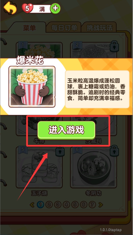 1、在游戲主界面選擇"爆米花模式",該模式以制作爆米花為主題,配有歡快的背景音樂和生動的動畫效果。