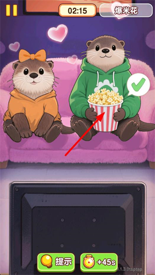 4、制作完成后,會出現可愛的動物角色享用爆米花的場景,完成制作任務后獲得認可,推動游戲后續發展。
