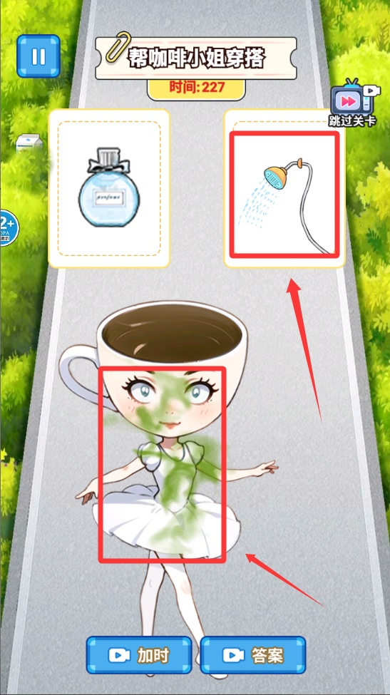 4、當小姐姐衣服出現污漬時,快速點擊右側工具欄的花灑圖標,滑動手指就能幫她清洗干凈并獲得滿意度加分。