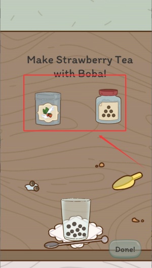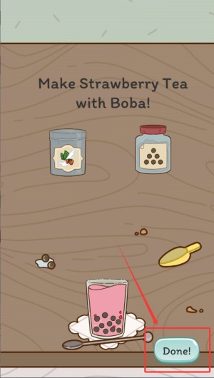 3、當所有原料都添加完畢后,點擊右下角閃亮的"完成"按鈕,一杯香濃可口的珍珠奶茶就制作好啦。