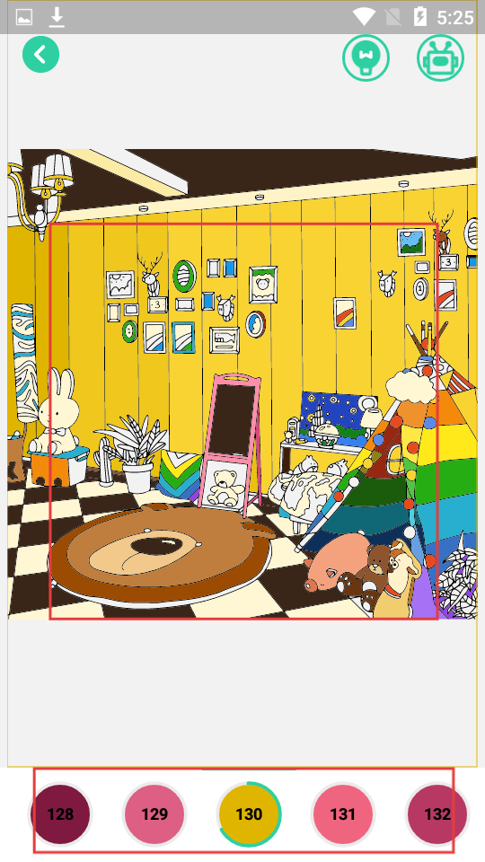 1、在主頁選喜歡的線稿,進入填色界面,根據數字提示,選取顏色,填充對應區域。