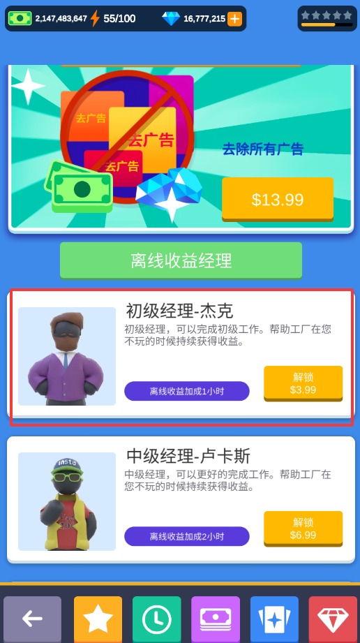 4、掛機收益系統智能高效,合理規劃生產線后,即使離線也能持續獲得收益,再忙也不耽誤工廠發展壯大。