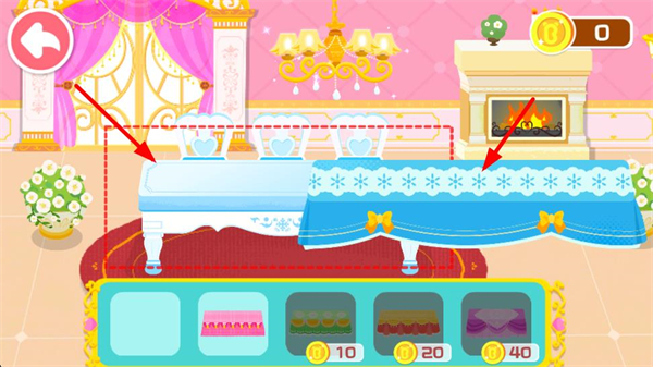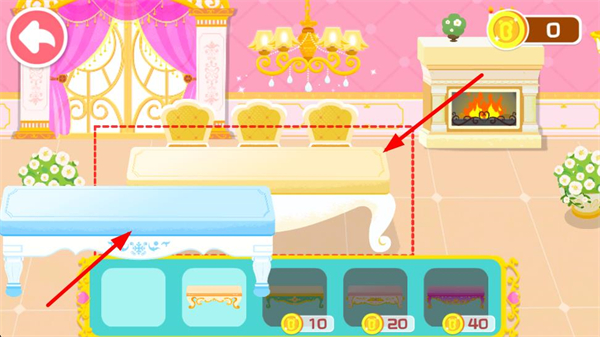 3、提供72種精美裝飾品,包括水晶吊燈、復古毛毯、石柱路燈等,讓寶寶自由搭配組合,創造個性化的童話城堡空間。