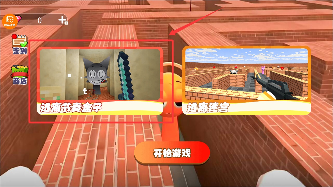 3、進入模式選擇菜單,點擊"逃離節奏盒子"挑戰玩法,體驗獨特的音樂節奏逃脫游戲。