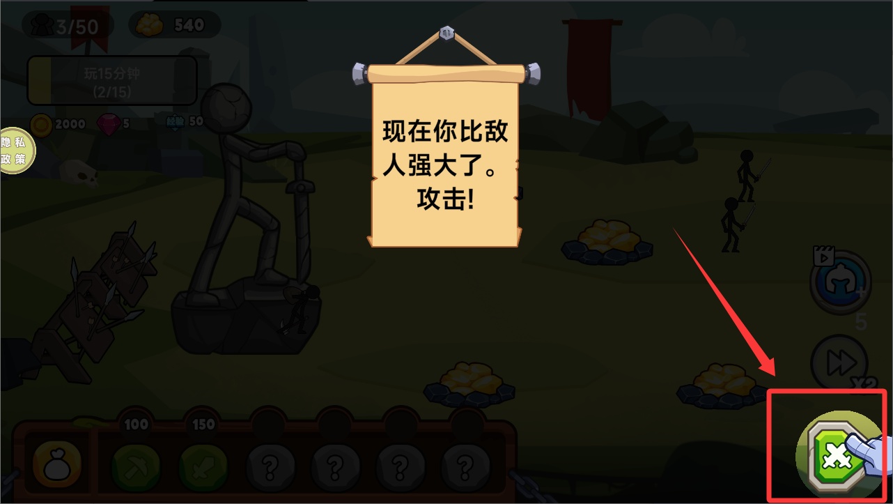 4、準備就緒后點擊右下角閃著紅光的劍形戰斗圖標,部隊將立即出擊迎戰正在逼近的敵方單位,開啟第一場攻防戰。