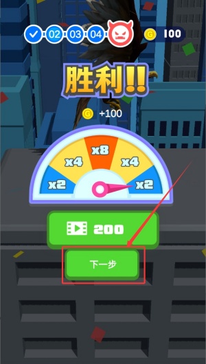 4、戰勝當前關卡所有敵人后,輕觸下一步按鈕解鎖更刺激的新戰場,迎接更強大的BOSS挑戰。
