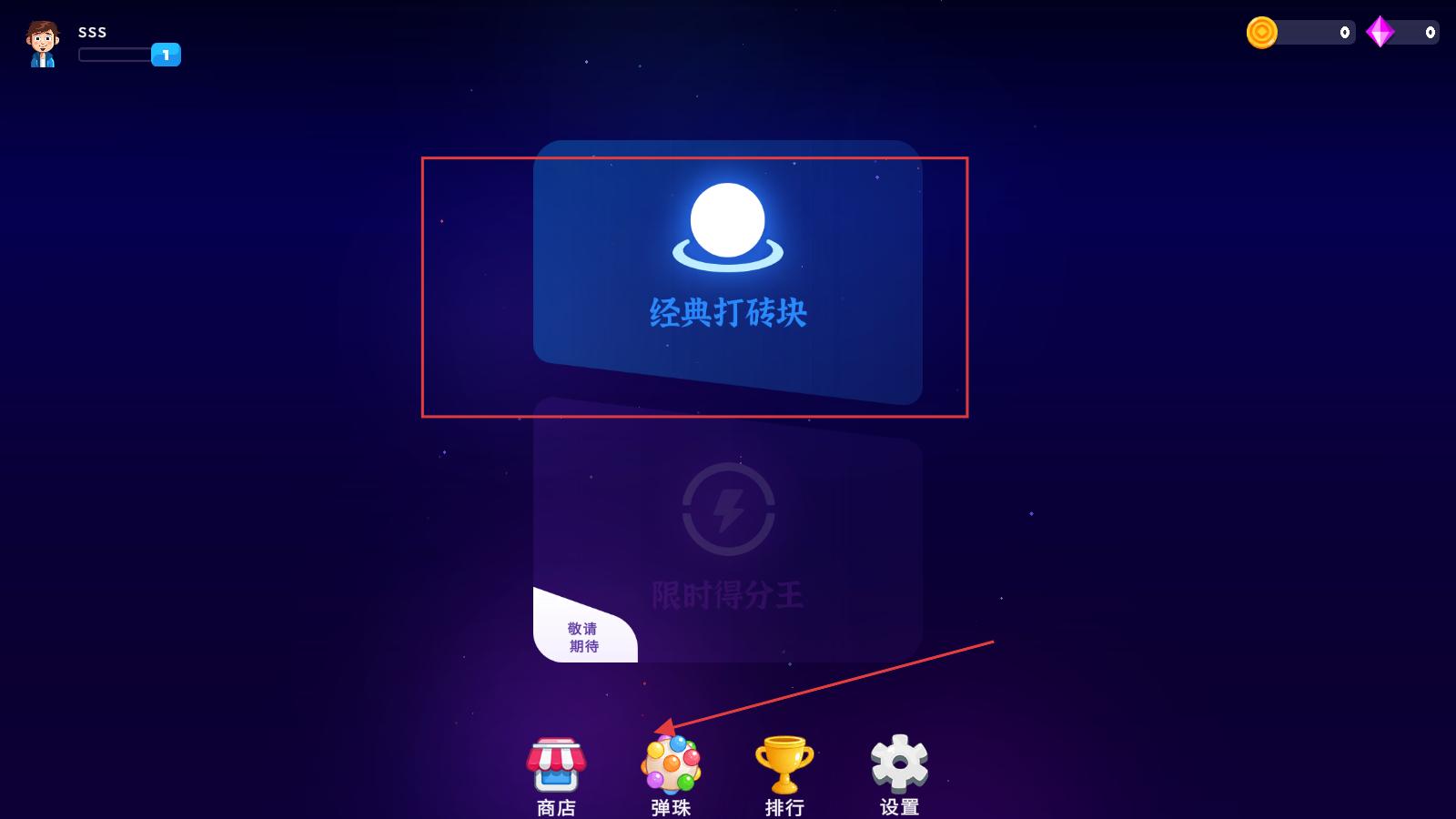 1、玩家進入后,可點擊經典打磚塊進入,通過底部彈珠按鈕控制發射方向,優先消除數字小的,快速推進。