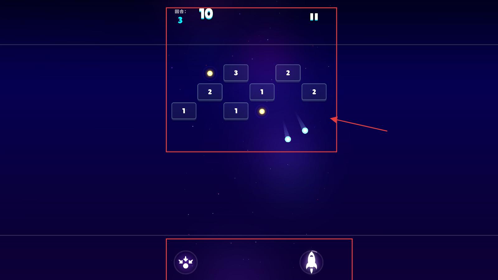 3、玩家在消除磚塊時,可以留意加分道具,及時拾取,用技能道具如分裂彈清屏,完成回合目標,沖擊排行。