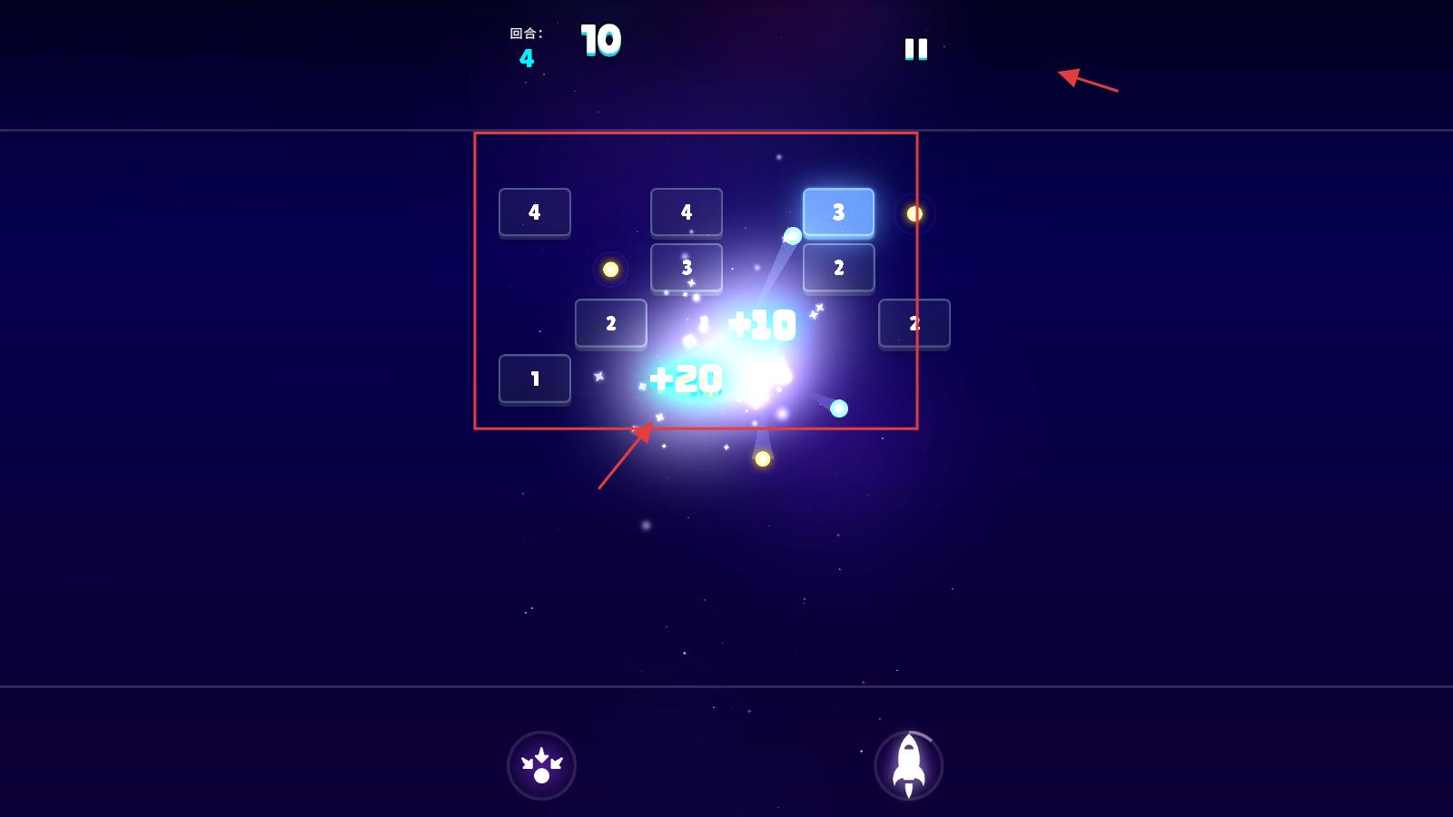 2、玩家在回合內,可利用彈珠反彈,同時發射多顆彈珠,集中打擊同數字區域,觸發連鎖消除,獲取高分。
