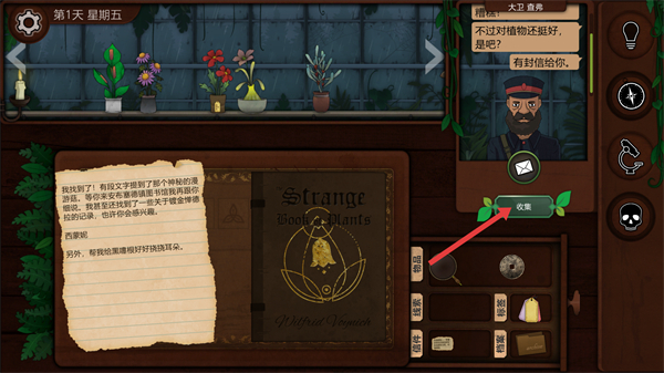 1、會收到信件,點擊收集可查看信件內容,了解植物相關信息,推進游戲劇情。